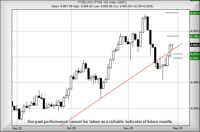 From an immediate perspective, we shall be a little interested if the FTSE manages above 9728 as this should create a lift to a fairly useless 9747 points. But in the even the FTSE manages to bubble above 9747 points, we shall regard it as moving into bigger picture territory with 9835 exerting an attraction. Should this movement trigger, the tightest stop looks like 9703 points, a fairly reasonable gift.