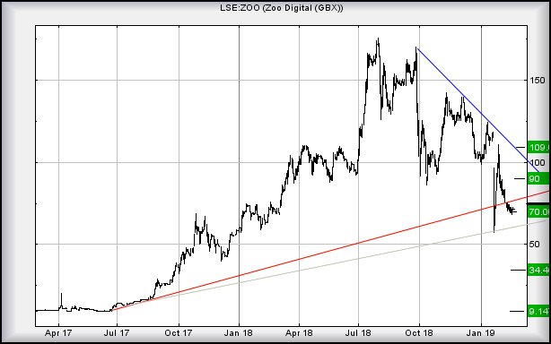 The immediate situation has become quite dangerous with the price once again flirting with the 70p level, tending confirm our drop calculation was indeed correct. For some reason, share prices will often gravitate around target levels and to us, the key issue is whether a price actually breaks below the target on the initial drop. In the case of ZOO, it did and thus, we are concerned.