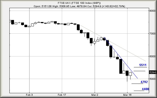 17/03/2020 FTSE Closed at 5294 points. Change of 2.78%. Total value traded through LSE was: £ 9,128,689,221 a change of -13.38%