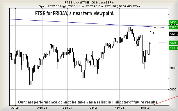 From a near term perspective, the FTSE now requires exceed 7,366 to suggest coming movement to an initial 7,380 points. If bettered, we can calculate a secondary at 7,431 points, quite cheerfully above the trigger level which is supposed to trigger a mythical “Santa Rally”. Then again, as we live in an age where politicians frown on all frivolity and ensure their behaviour meets the lowest standards expected in public office, perhaps politics shall conspire to derail any optimism.