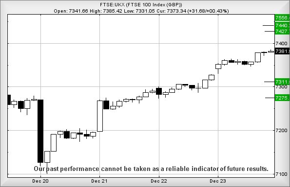 Despite few people taking the time out to read this (something to do with Xmas holidays), our whimsical report for Thursday proved rather concise. Our initial target of 7378 points was successfully achieved, bettered by 7 points, and giving a nice little useful 36 point trade. Of course, the big question relates to Friday mornings potentials.