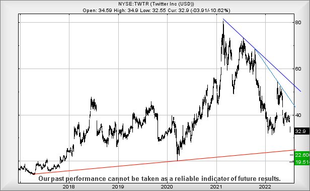 Twitter now appears to have a share price in the process of enjoying a little melt-down. The company appear to be exercising a strategy of taking Mr Musk to court to force his to complete the purchase or pay them $1 Billion for pulling out. The flaw in their argument is pretty obvious. To succeed in court, Twitter will need reveal how many of their ‘subscribers’ are actually fake accounts, thus giving Elon Musk the information he required from the outset.