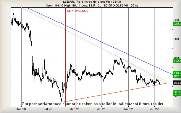If we indulge our favourite party trick of drawing lines on charts, this miserable state of affairs could continue until the end of August, when Rolls Royce reach a point where some action is almost demanded by the market. But if we err on the side of common sense, visually there’s a chance things may not “kick off” until the end of 2022.