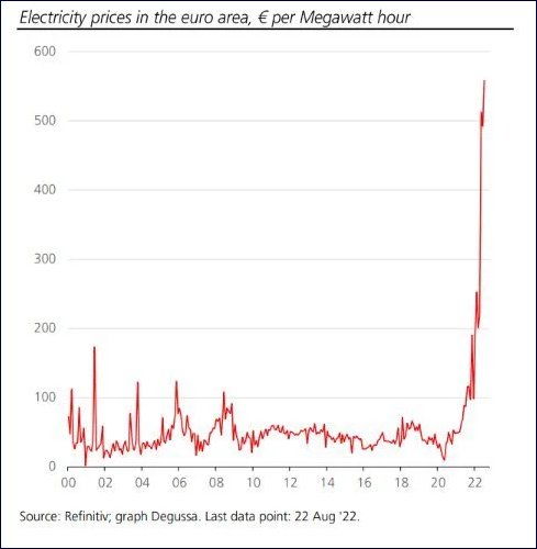 However, it’s a chart of the price in Euro’s for a Megawatt hour of electricity, a truly unpleasant picture and about the only two slight sources of hope are those of common sense, along with a story about our local Heating Oil supplier.