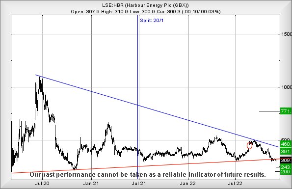 Harbour Energy (LSE:HBR) We’d glanced at this back in September and every appears to be going wrong with their share price. Visually, it’s easy to believe the price is experiencing a “double bottom” as visually, the current trip to the 300p level visually matches the lows from July earlier this year.