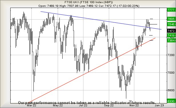 A converse scenario asks what should be anticipated, should the FTSE 100 drag itself above this weeks downtrend at 7520 points?