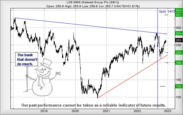 We’ve become so cynical with the markets, spending the weekend with an occasional glance at the news to discover if a ‘breaking story’ has yet appeared, used as an excuse to force recovery of crude oil prices. Britain hasn’t invaded Ireland, Saudi refineries are still intact, Russia is still Russia, and Xmas is still coming. About the only “surprise” is the cold weather, along with the salient fact a Blocking High in winter brings very cold weather, along with wind power taking a little break when it’s most needed. As for Natwest, their share price remains utterly becalmed and similar to Brent Crude, it’s failing to do anything particularly interesting.
