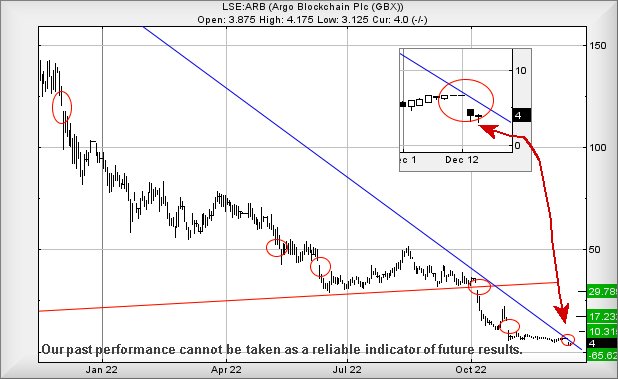 When we previously reviewed Argo Blockchain back in January of this year, we failed to be impressed and pointed out the dangers if it moved below 88p. By the end of the month, the share price had ticked all the boxes and started to tumble, eventually reaching out “ultimate bottom” of 49p during May 2022. We’d assigned this as an “ultimate bottom” simply because we couldn’t calculate lower without invoking minus signs. Following this calamity, time has not been kind to the share and it’s currently trading around 4p.