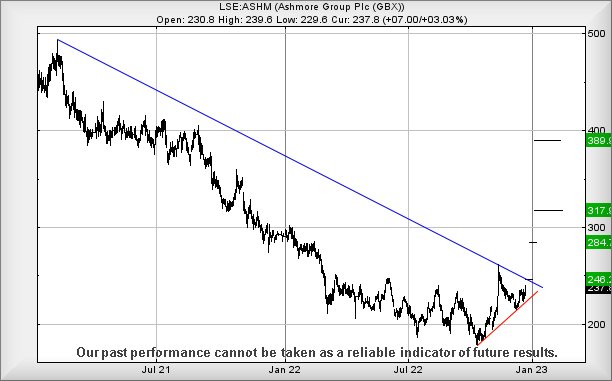 However, Ashmore Group, described as a specialist emerging markets investment manager, enjoy a share price which appears on the edge of becoming useful, fairly soon.