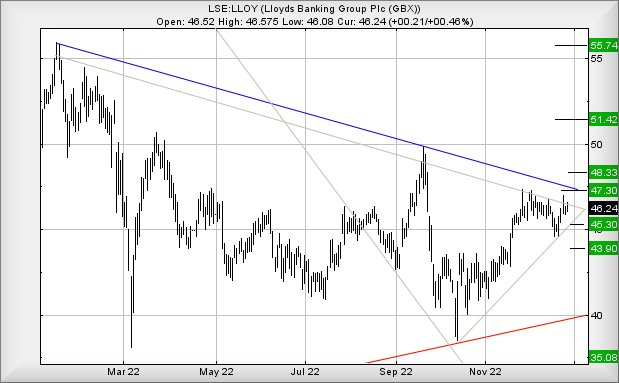 Currently, the share price now needs CLOSE above 46.54p to give the first clue some gains may be expected. When it opted to close 28th December at 46.24p, how we laughed… It’s still the case the market isn’t in the mood to do Lloyds share price any favours. Hopes of a so called Santa Rally are degenerating into a “Who Killed Santa” mindset.