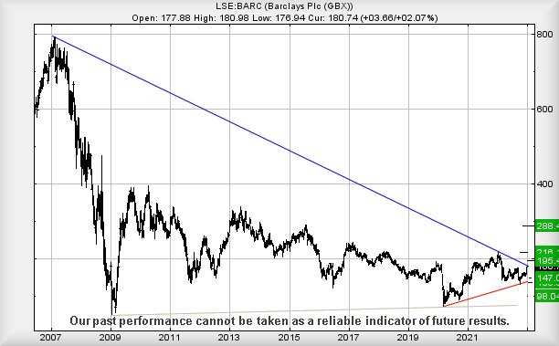 LSE:BARC Barclays. Close Mid-Price: 180.74 Percentage Change: + 2.07% Day High: 180.98 Day Low: 176.94