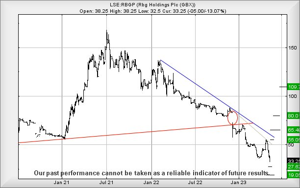 #FTSE #Nasdaq  One of the few legal firms listed on the UK exchanges, RBG Holdings share price has not followed a great trajectory since July 2021 and finally, we suspect we’re seeing early signals it may be in the final stages of this death spiral. To be fair, if the market thinks there’s real strength present, ideally this share shall bounce anytime soon.