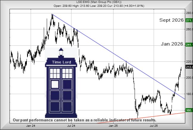 MAN Group Plc (LSE:EMG) Trading around 213.8p and Time Travel potentials