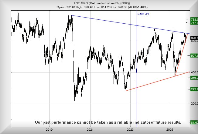 If we fall down on the side of optimism, it appears we dare not trust Melrose until such a point where their share price closes a day above 650p. Such an event is liable to prove quite exciting, calculating with the potential of a lift to an initial 717p with our secondary, if exceeded, working out at 738p, along with the need for us to take a hard look at our Big Picture tea leaves.