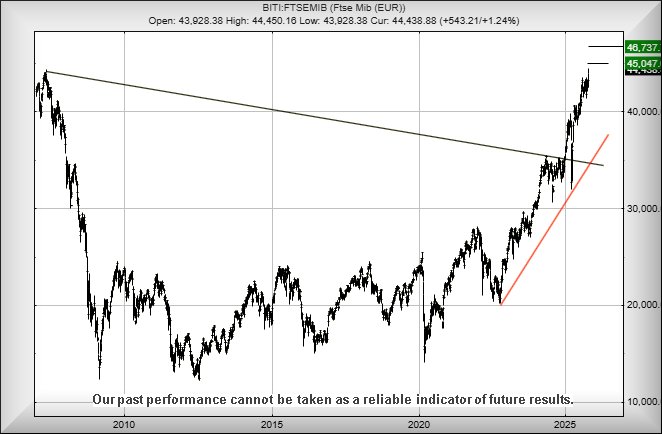 Meanwhile, Italy, a country unable to get its cars across the finish line in the Brazilian Grand Prix, has perhaps better reason to celebrate, their stock market now trading higher than any point since 2007. There are some signs its gains should continue, though we fear some hesitation is probable around the 45,000 level. It is certainly doing well but the proximity of our secondary at 46,737 tends suggests the Italian index risks stutters fairly soon. Perhaps this will come, if their Ferrari donkeys finally exhibit some strength and start winning races in Formula 1. Currently trading around 44,439 points, it need only exceed 44,500 to suggest an imminent cycle to 45,047 points, perhaps coinciding with the next Grand Prix!