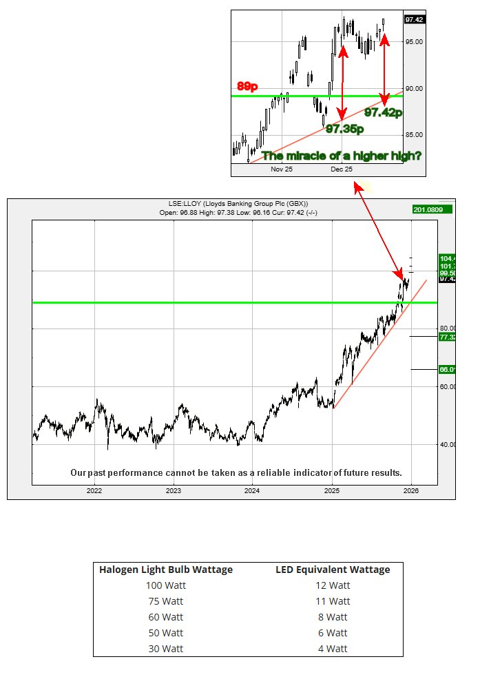 There is another detail, worthy of mention, and it’s akin to playing with temporary traffic lights in Argyll… Once Lloyds share price manages to actually close a session above our 104p level, long term recovery to around 201p shall be seen as commencing. Hopefully, should this be the case, we don’t see the lights on an oncoming idiot getting ready to spoil the transit upward.