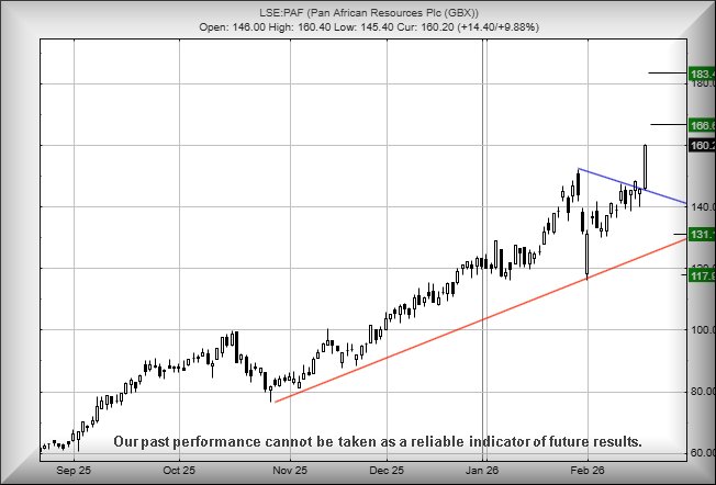 As for Pan African share price, above an attractive 161p looks capable of provoking further growth to an initial 166p with our secondary, if bettered, at 183p and a point at which we anticipate some sort of hesitation, essentially a point at which the share price should bounce around a bit while it establishes new trend potentials.