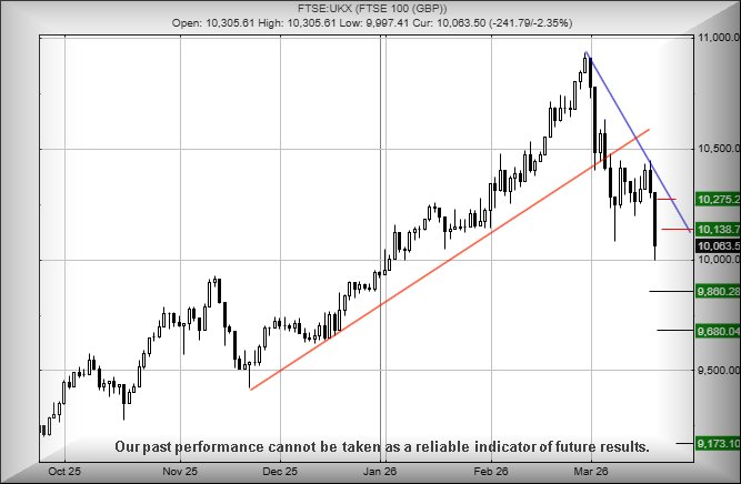 19/03/2026 FTSE Closed at 10063 points. Change of -2.35%. Total value traded through LSE was: £ 10,593,978,868 a change of 34.88%