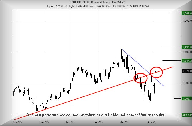 Rolls Royce (LSE:RR.) Trading around 1,278 at time of writing.