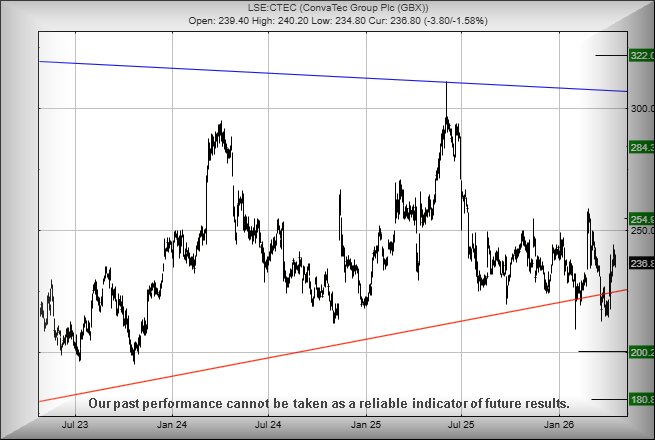 Convatec share price needs below 224p to ring alarm bells, providing the threat of reversal to an initial 200p with our secondary, if broken, at 180p and hopefully a bounce.