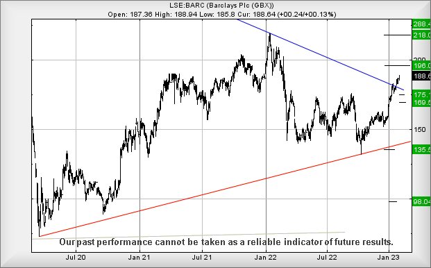Barclays Plc We’d anointed 181.15p as a level above which Barclays needed to close to provide an early sign of springtime. Finally, in the middle of January, the required miracle occurred and what’s been happening since is a little bit underwhelming, the target numbers only requiring the slightest of tweaks. It certainly appears the share price now needs close below 180p to indicate coming trouble but by most standards, we’re remain pretty optimistic.