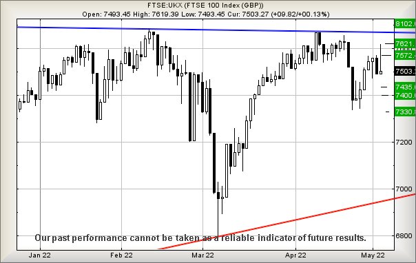 5/05/2022 FTSE Closed at 7503 points. Change of 0.13%. Total value traded through LSE was: £ 6,912,828,845 a change of 20.87%