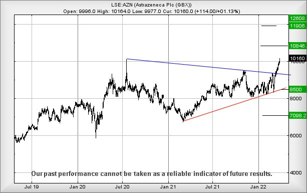 LSE:AZN Astrazeneca. Close Mid-Price: 10160 Percentage Change: + 1.13% Day High: 10164 Day Low: 9977