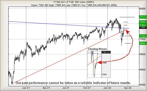 17/03/2022 FTSE Closed at 7385 points. Change of 1.29%. Total value traded through LSE was: £ 6,876,379,438 a change of -21.82%