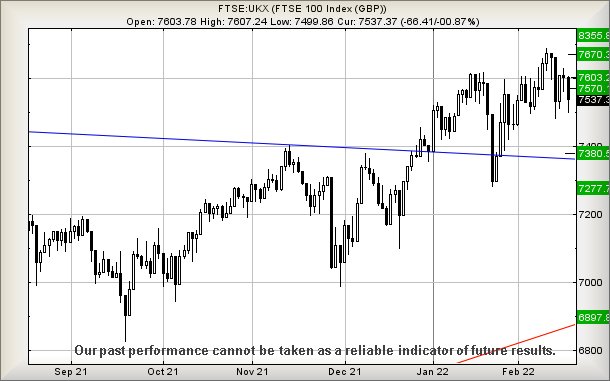 18/02/2022 FTSE Closed at 7513 points. Change of -0.32%. Total value traded through LSE was: £ 6,423,213,414 a change of 12%