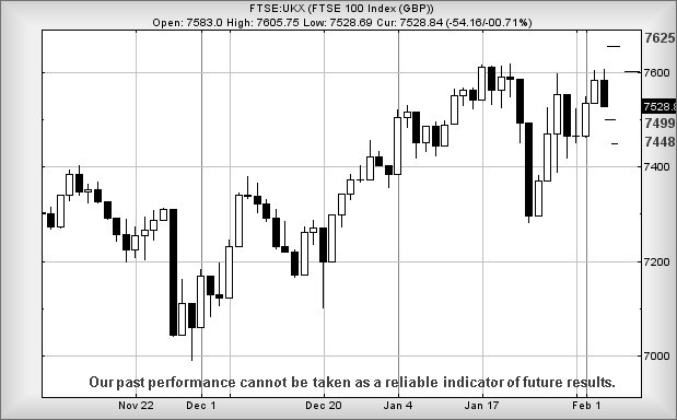 | 9:48:52PM | FTSE | 7616.73 | 7606 | 7591 | 7647 | 7690 | 7724 | 7627 | ‘cess | ||