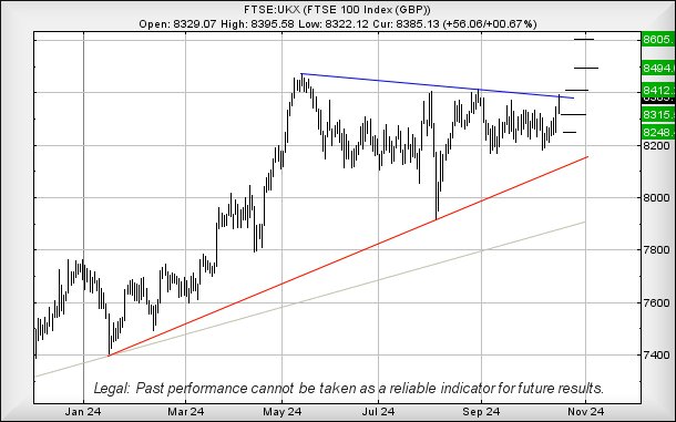 17/10/2024 FTSE Closed at 8385 points. Change of 0.67%. Total value traded through LSE was: £ 5,311,482,750 a change of -18.88%