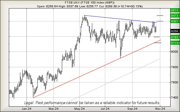 15/10/2024 FTSE Closed at 8249 points. Change of -0.52%. Total value traded through LSE was: £ 5,959,303,789 a change of 44.82%