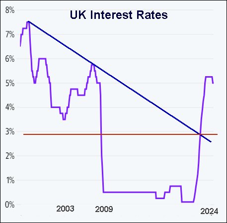 It was unusual, noting BoE claimed the drop in inflation to 2.2% was due to Inflationary Pressures easing due to the previous cut in rates. As a result, they somehow decided this was a perfect reason to further delay rate reductions for the present. What’s doubly foul is the trend suggests the UK should head to around 2.9%, this being our best guess due to the historical level of the trend break in 2021, when the BoE decided the best way to challenge inflation was to force prices up. It’s almost a surprise they didn’t advocate another increase in VAT or Fuel Duty in an attempt to further fight inflation by making the country poorer. At times, it feels like the Bank of England are populated by the type of people who often gravitate into politics, where the most important qualification seems to be active hatred of your own country!