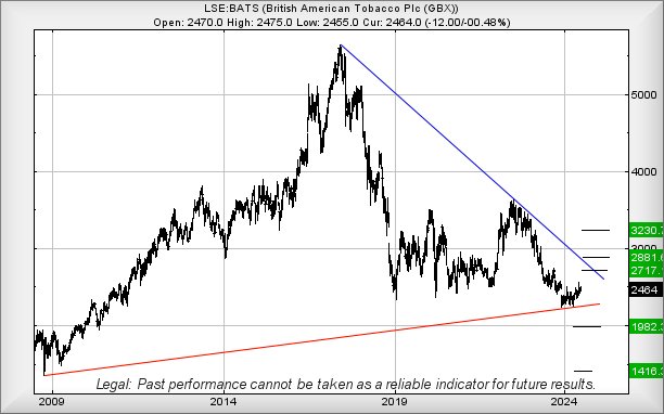 Visually, above 590p would make an excellent stop loss level, if chasing a reversal position on this share price. Basically, price movements above such a level utter foul up all our calculations.
