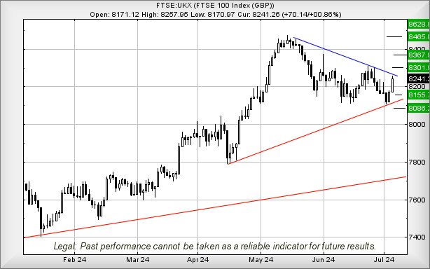 As for the FTSE, we’d expected the UK to be flat while the election played out to its forgone conclusion. The days since the result have proven pretty placid in a period when other markets have felt like they intend go higher than immediate logic allows. The Nasdaq for instance calculated with a theoretical “top” around 20,200 and this week has seen the index briefly head to 20,400 points before slightly reversing. Perhaps we are about ready to enter a period where the FTSE breaks free of its malaise and produce some gains?