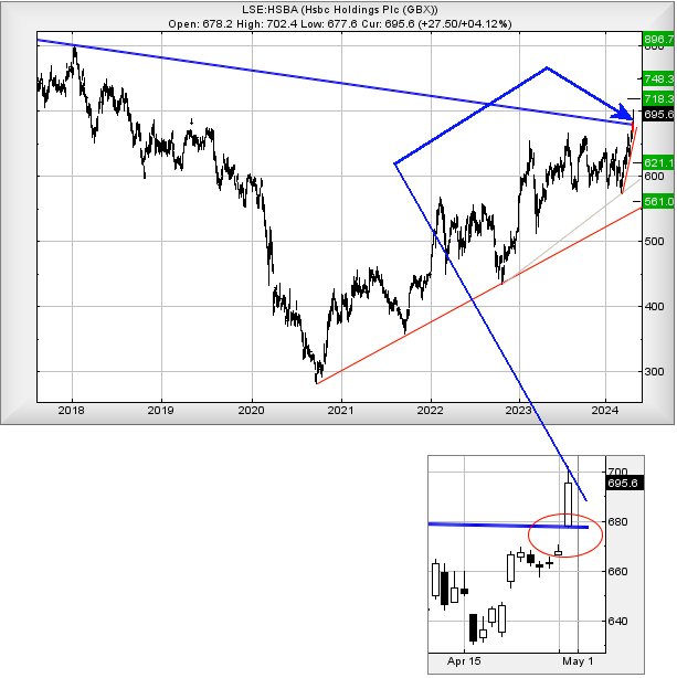 Target met. In the event of HSBC enjoying further trades beyond 702.4, th ……..