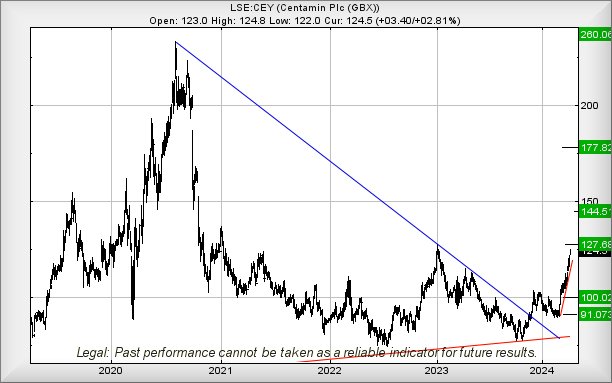 LSE:CEY Centamin. Close Mid-Price: 125 Percentage Change: + 0.40% Day High: 126.6 Day Low: 122.8