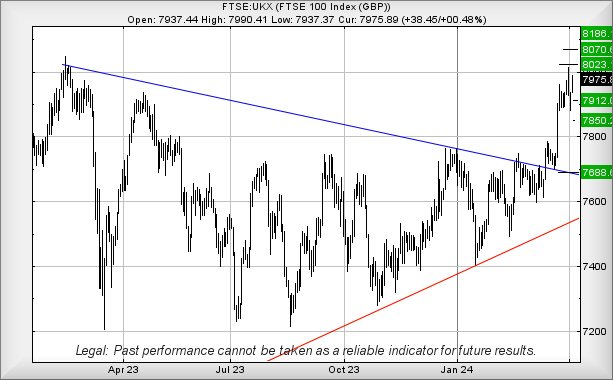 3/04/2024 FTSE Closed at 7937 points. Change of -100%. Total value traded through LSE was: £ 6,056,901,297 a change of 0%