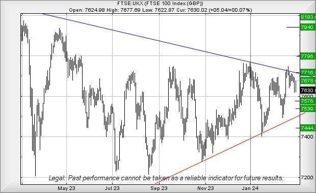 | 10:32:15PM | FTSE | 7686 | 7638 | 7616 | 7665 | 7713 | 7737 | 7673 | Shambles | ||