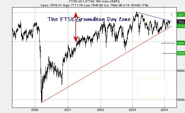 #FTSE #F1 The eternal Groundhog Day in which the UK stock market is trapped continues to frustrate everyone. Across the pond, the US markets are taking turns in painting “New, All Time Highs” whereas here, the only thing worth painting appears to be frustrated lines on charts. The current hiatus isn’t fascinating, just a bit weird, as the UK now appears to be battling with the pre-pandemic high of 2020. Quite why this should be the case defeats us but once again, with the market closing Thursday at 7692 points, we’re in the sacred zone below 7700 points where nothing ever happens.