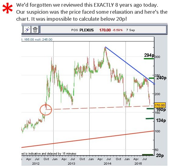 When a share price follows a trend, without actually disturbing it, generally this suggests the potential of any trend break provoking sharp movement. In the case of the FTSE, the chart below has a circled area, one which shows 5 intraday highs from London somehow deciding to mirror the immediate Blue downtrend. We’ve speculated quite often on just why this phenomena may occur but remain clueless as to any answer which isn’t ridiculous. However, there is one feature from this sort of thing as it’s often the case any future break of the trend will produce very sharp movements. In this instance, the “threat” is a break of the downtrend should provoke sharp upward movements, rather than a namby-pamby half hearted trip across a trend line.