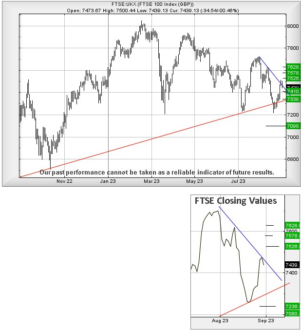 1/09/2023 FTSE Closed at 7464 points. Change of 0.34%. Total value traded through LSE was: £ 4,351,126,417 a change of -43.85%