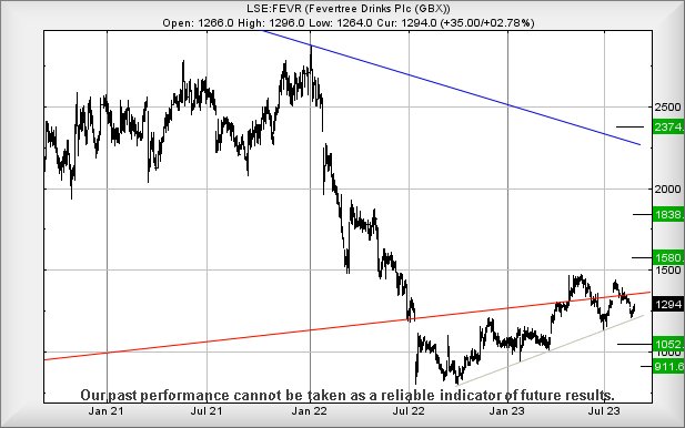 As it looks like we shall be adding miniscule’ to Fevertree sales, it makes sense to review their share price as it has clearly ingested a “stupid pill” sometime during the last few months. We’re quite curious as to why the share price is oscillating above and below the Red uptrend since 2015, the movements obviously provoking some confusion. However, now above just 1350p should prove capable (hopefully) of triggering price recovery to an initial 1580p with secondary, if exceeded, calculating at 1838p along with almost certain hesitation. Visually, there’s a fly in the ointment due to considerable care being taken to restrain the price just below the 1500p level.
