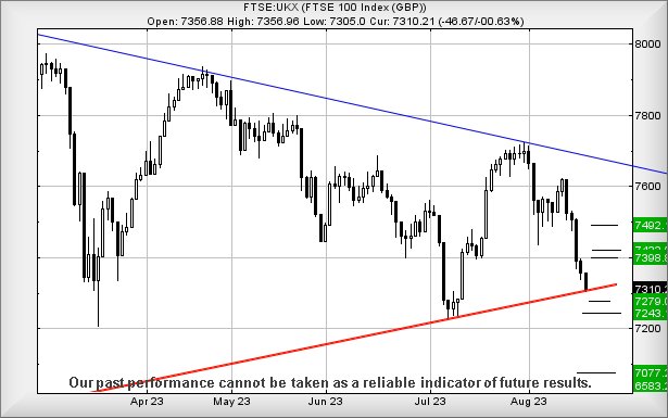 17/08/2023 FTSE Closed at 7310 points. Change of -0.63%. Total value traded through LSE was: £ 3,306,539,758 a change of -30.86%