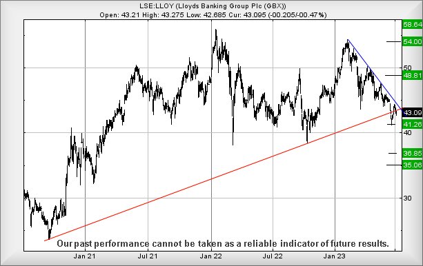 As always, we’ve a converse scenario tucked away, one which was born from Legal & General price movements in the first couple of months of this year. The price appeared quite firmly controlled in this period nudging up and down by only 10p like an annoying nodding dog toy in the back of the car in front at traffic lights. Our inclination is to take some hope from the repeated efforts made to stop LGEN going up in price. There’s been some volatility in the months since, very little of which makes immediate sense, and now, we suggest keeping an eye on the share in case some excuse is discovered to allow them to exceed Blue on the chart below (presently 258p) as this should hopefully trigger recovery to an initial 297p and some hesitation. Our longer term secondary, if 297p is bettered, works out at 330p and a new all time high.